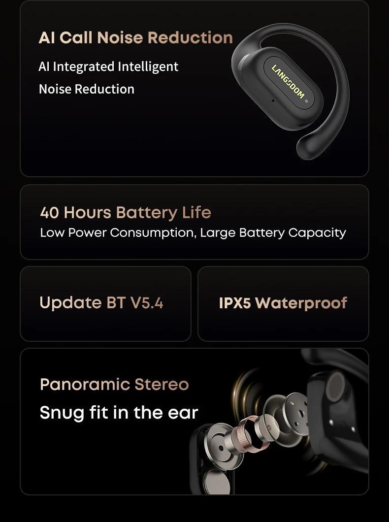 Estos auriculares redefinen el audio deportivo con una innovadora tecnología de conducción ósea que transmite el sonido mediante vibración, manteniendo tus oídos atentos al entorno. Diseñados para atletas, su diseño inalámbrico Bluetooth garantiza total libertad de movimiento, mientras que el ajuste ergonómico del gancho para la oreja los mantiene seguros durante entrenamientos intensos. Ligeros, resistentes al sudor y elegantes, ofrecen un sonido nítido, comodidad duradera y seguridad para entrenar, viajar o tus desplazamientos diarios.