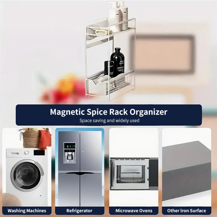 Este estante de almacenamiento está diseñado para organizar al instante cualquier superficie metálica sin necesidad de herramientas ni taladros. Con una base magnética resistente y un diseño de doble capa, mantiene los artículos de uso diario visibles y al alcance. Su estructura extraíble permite una colocación flexible y un reposicionamiento sencillo según las necesidades de almacenamiento.