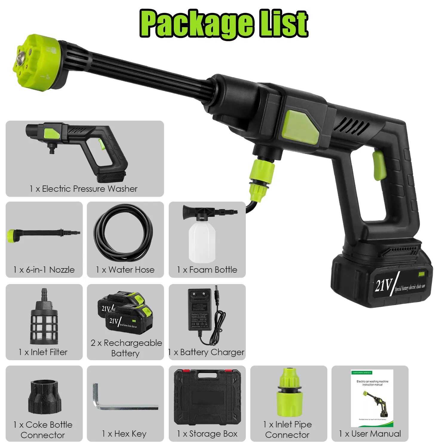 Esta hidrolavadora inalámbrica está diseñada para una limpieza flexible y eficiente sin las limitaciones de los cables. Alimentada por una batería de 21 V, proporciona una potente presión de agua para las tareas diarias en exteriores. Gracias a su diseño ligero y su boquilla multifunción, se adapta fácilmente a diferentes necesidades de limpieza, tanto en casa como fuera de ella.