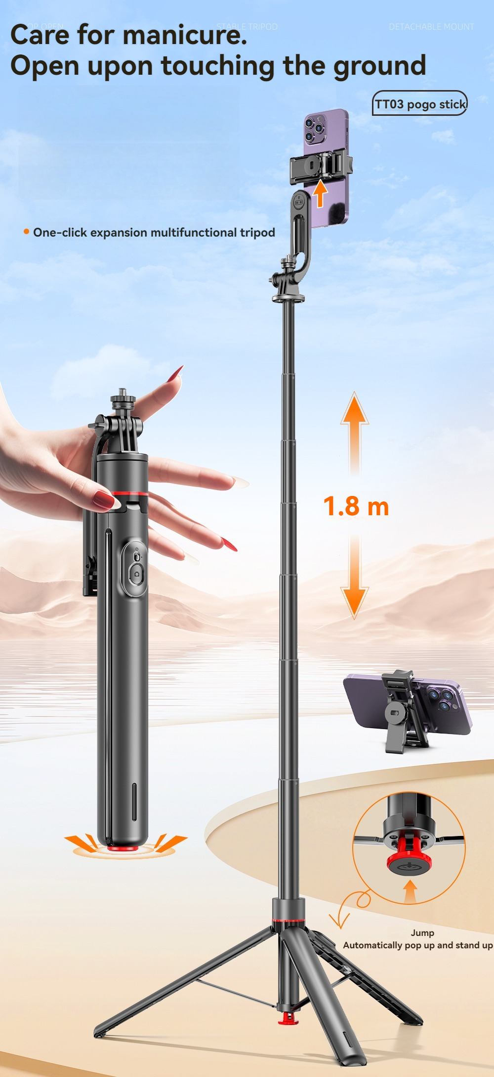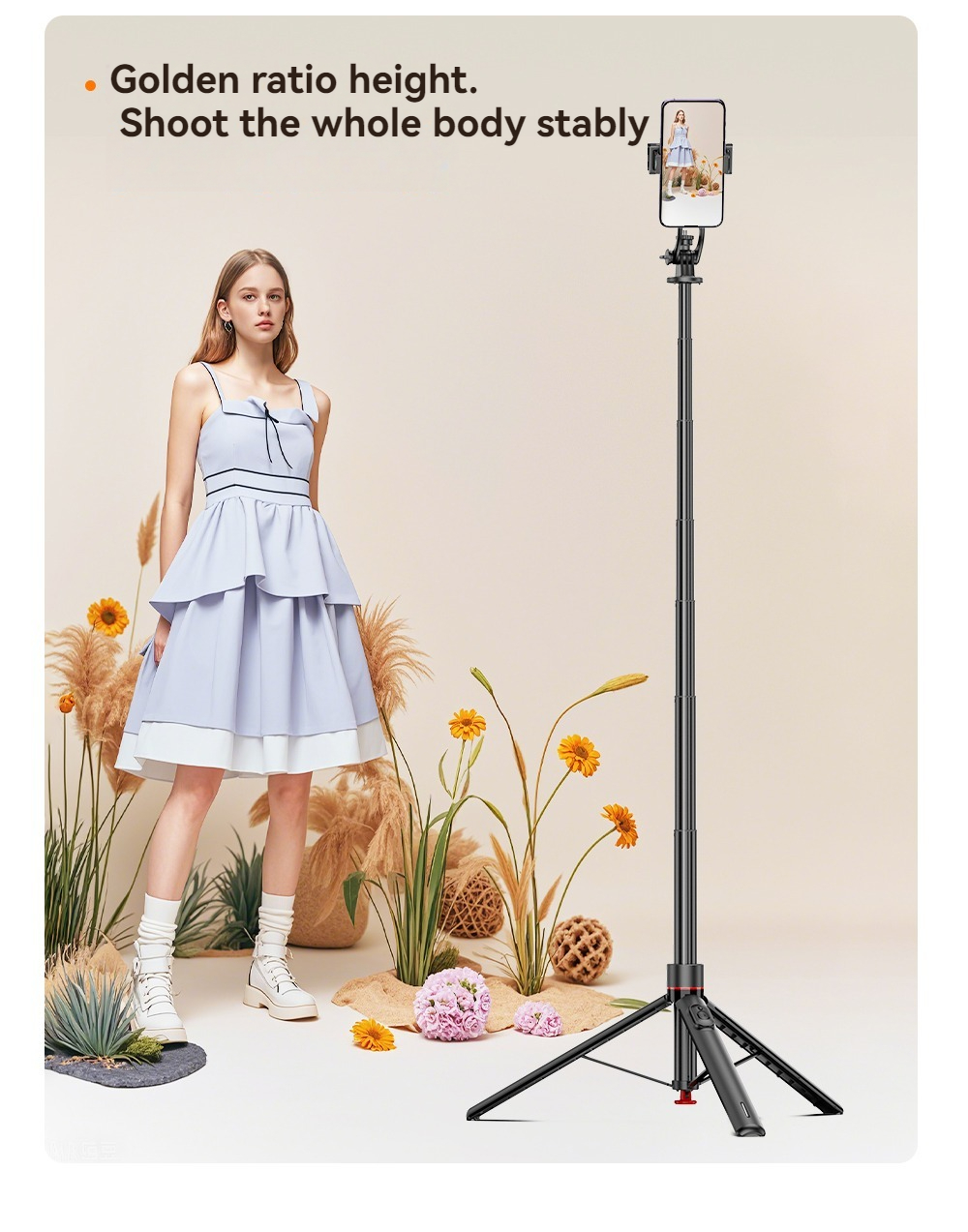 Este trípode está diseñado para brindar un soporte estable para el teléfono, ideal para crear contenido, videollamadas y grabar a diario. Combina una estructura de palo selfie con una base sólida y luz integrada, lo que permite ángulos flexibles y una iluminación uniforme. Compacto y fácil de transportar, este trípode se adapta perfectamente a interiores y exteriores.