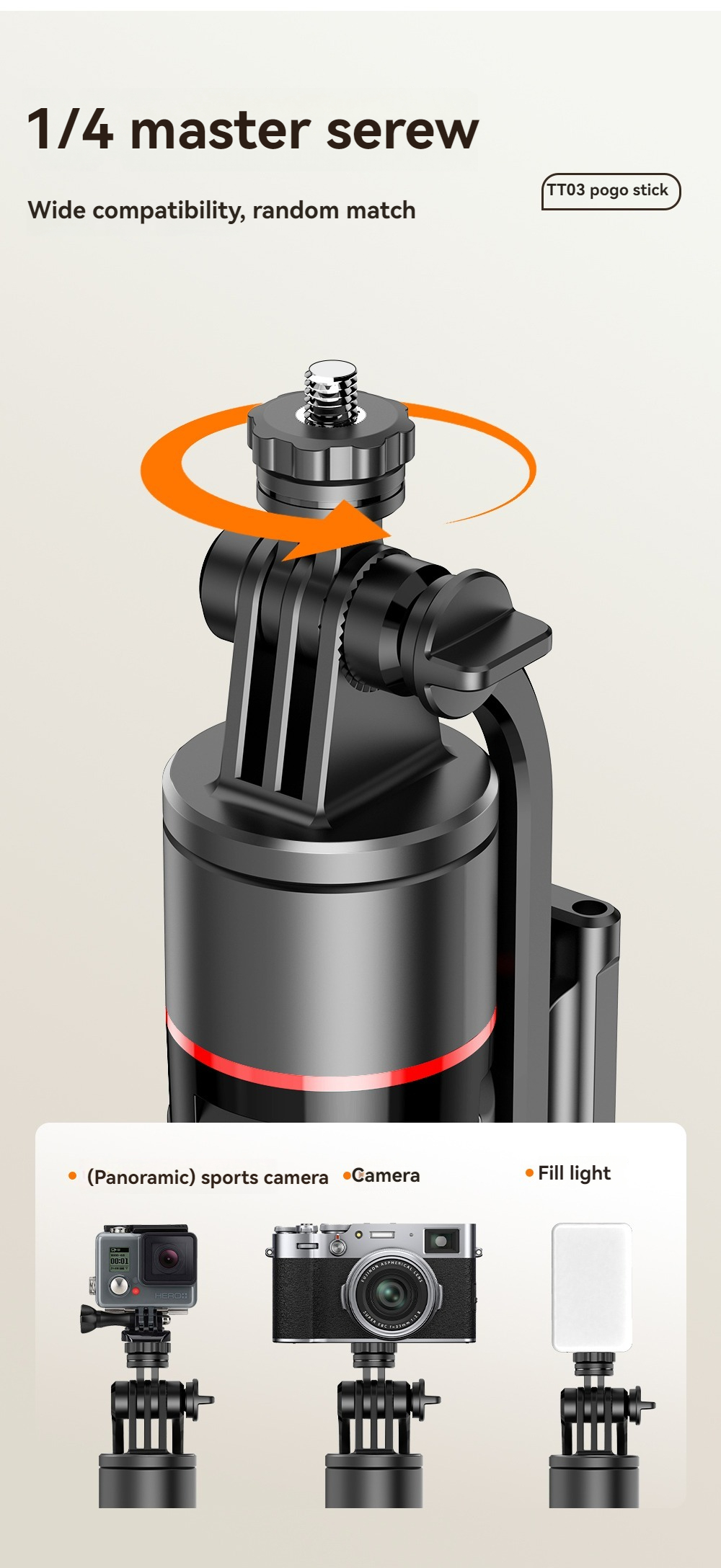 La altura del trípode ajustable admite múltiples ángulos de disparo.
