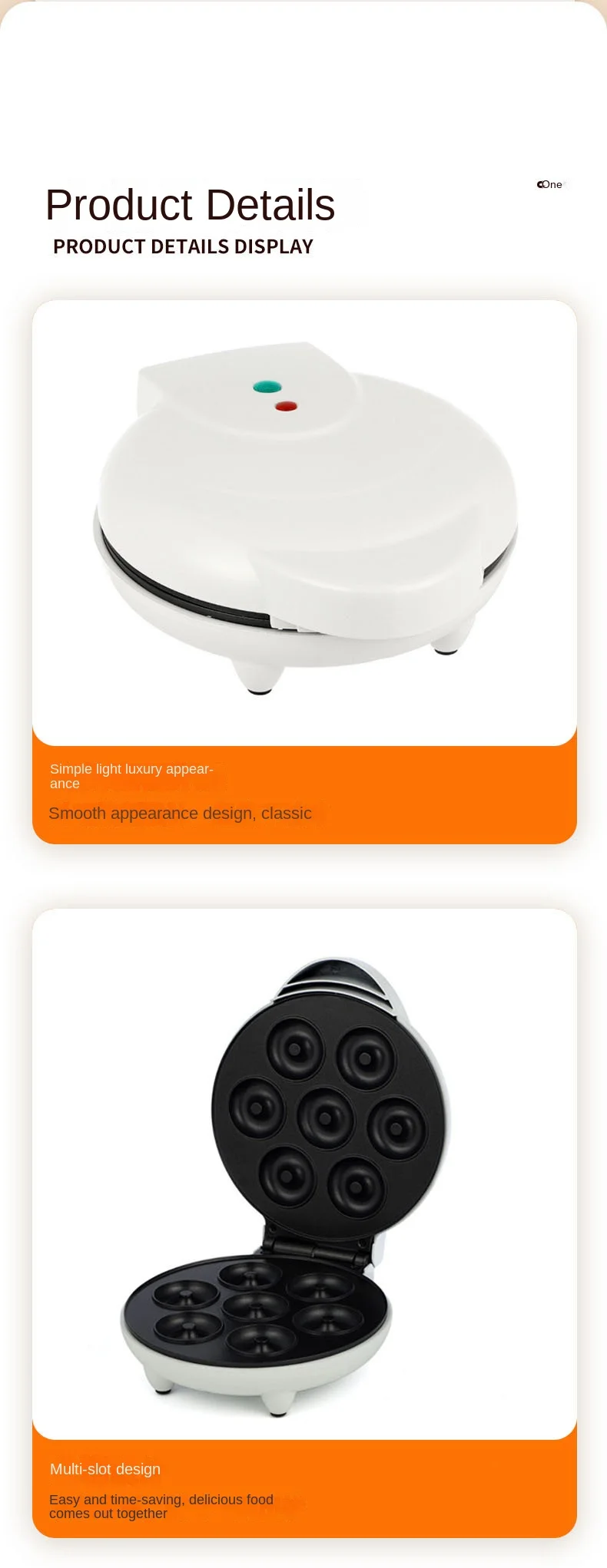 This donut maker uses 1200W power with automatic heating to create fresh donuts, egg cakes or bread quickly. Its non stick plates and adjustable thermostat support smooth baking, while interchangeable functions make it a versatile appliance for daily breakfast prep.