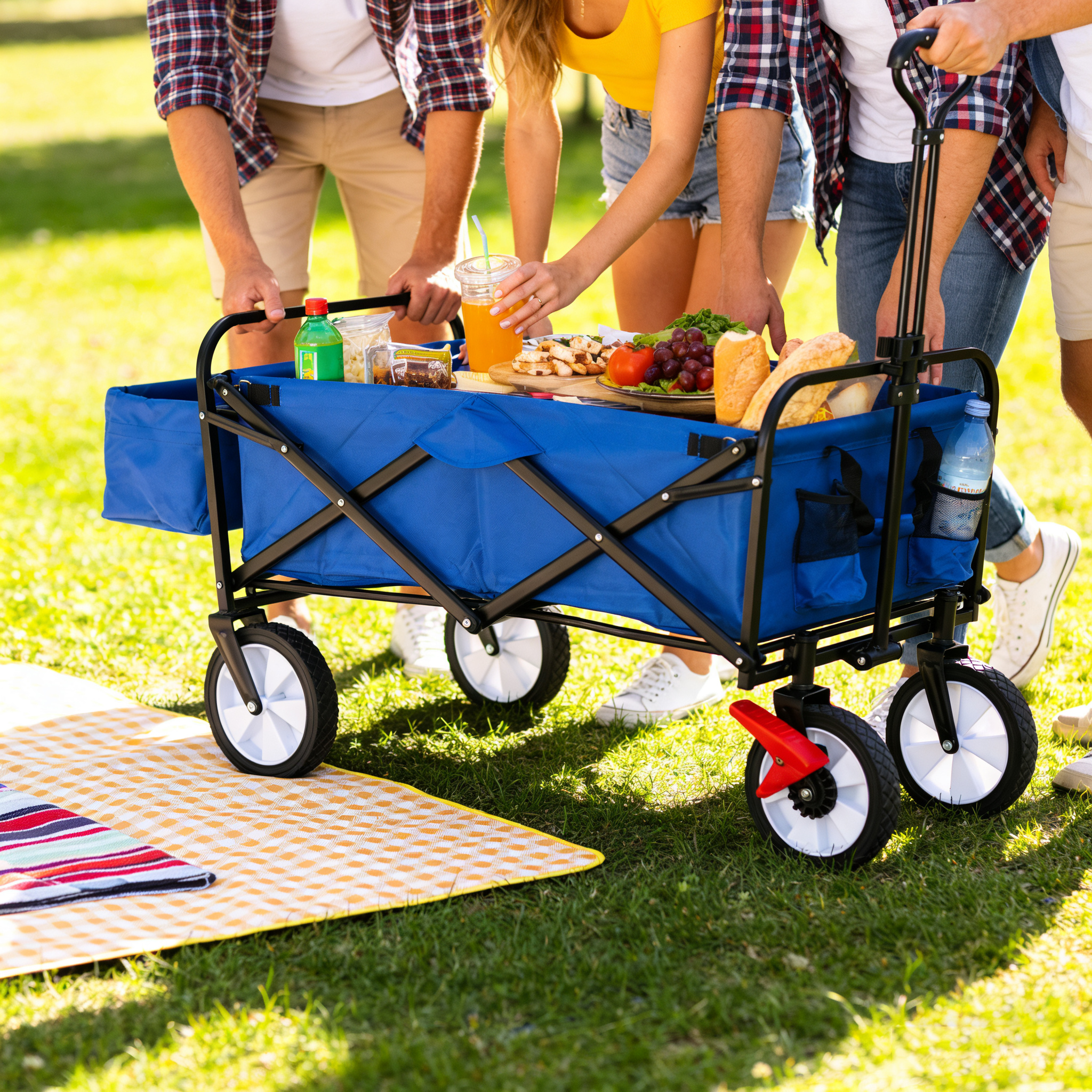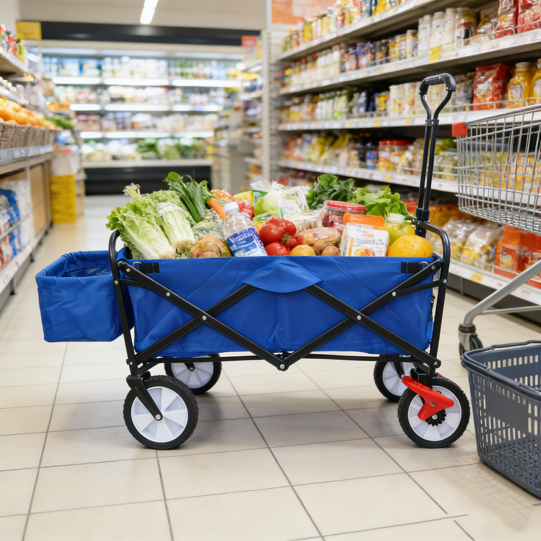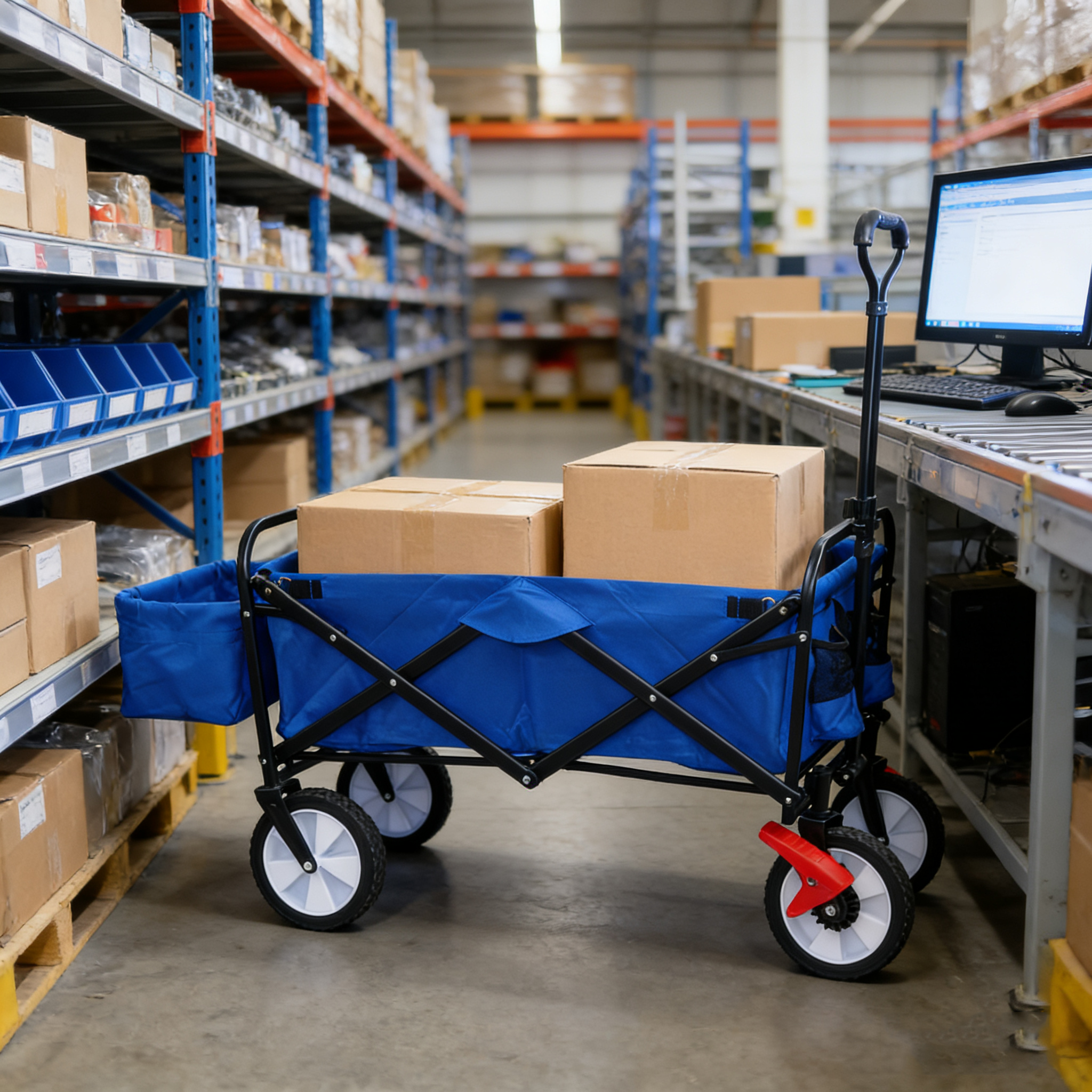 This folding utility cart is designed to handle outdoor transport with stability and ease. Built with a reinforced steel frame and durable fabric, the folding utility cart supports heavy loads while remaining easy to maneuver. Its collapsible structure allows fast storage, making this folding utility cart a reliable solution for everyday and recreational use.