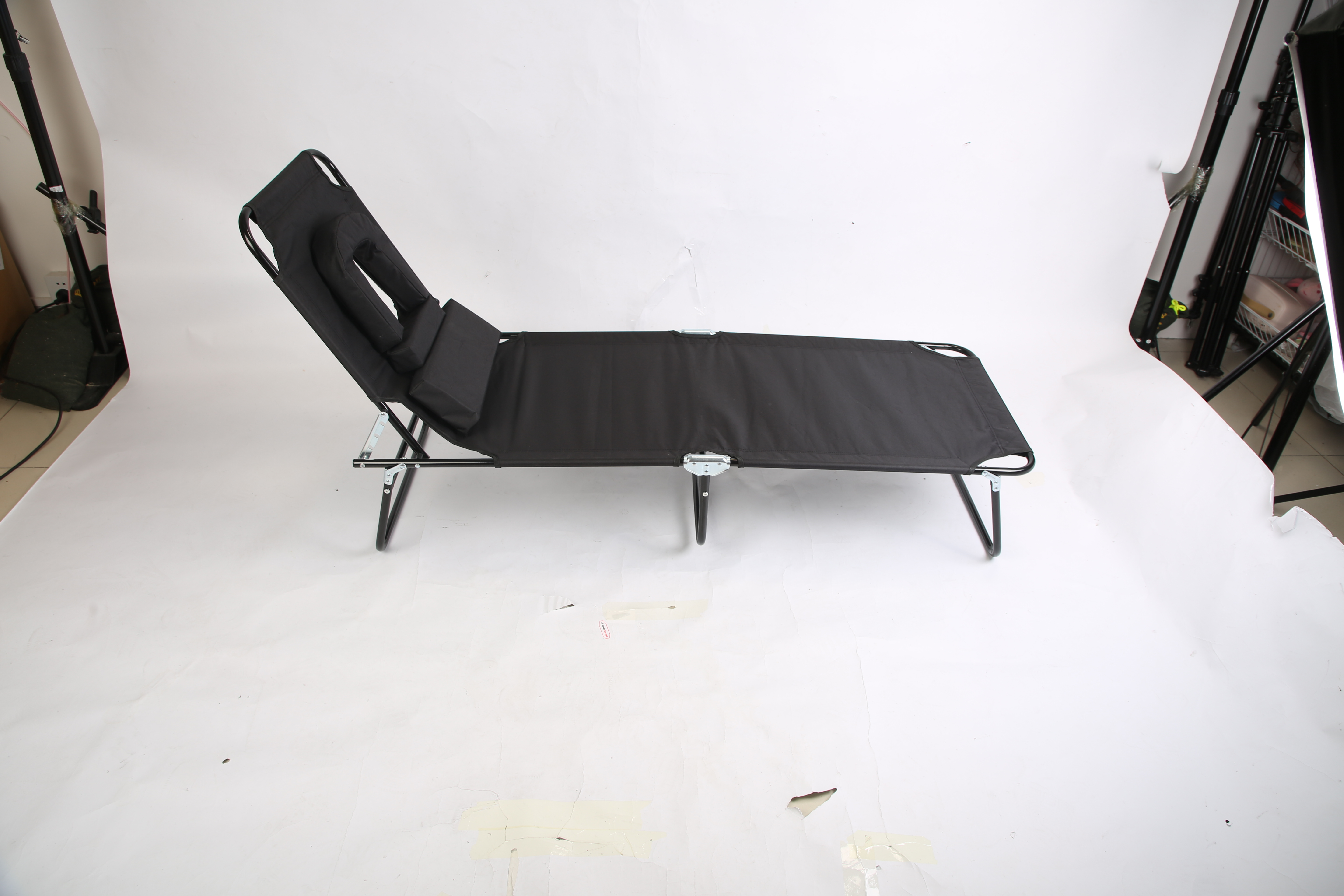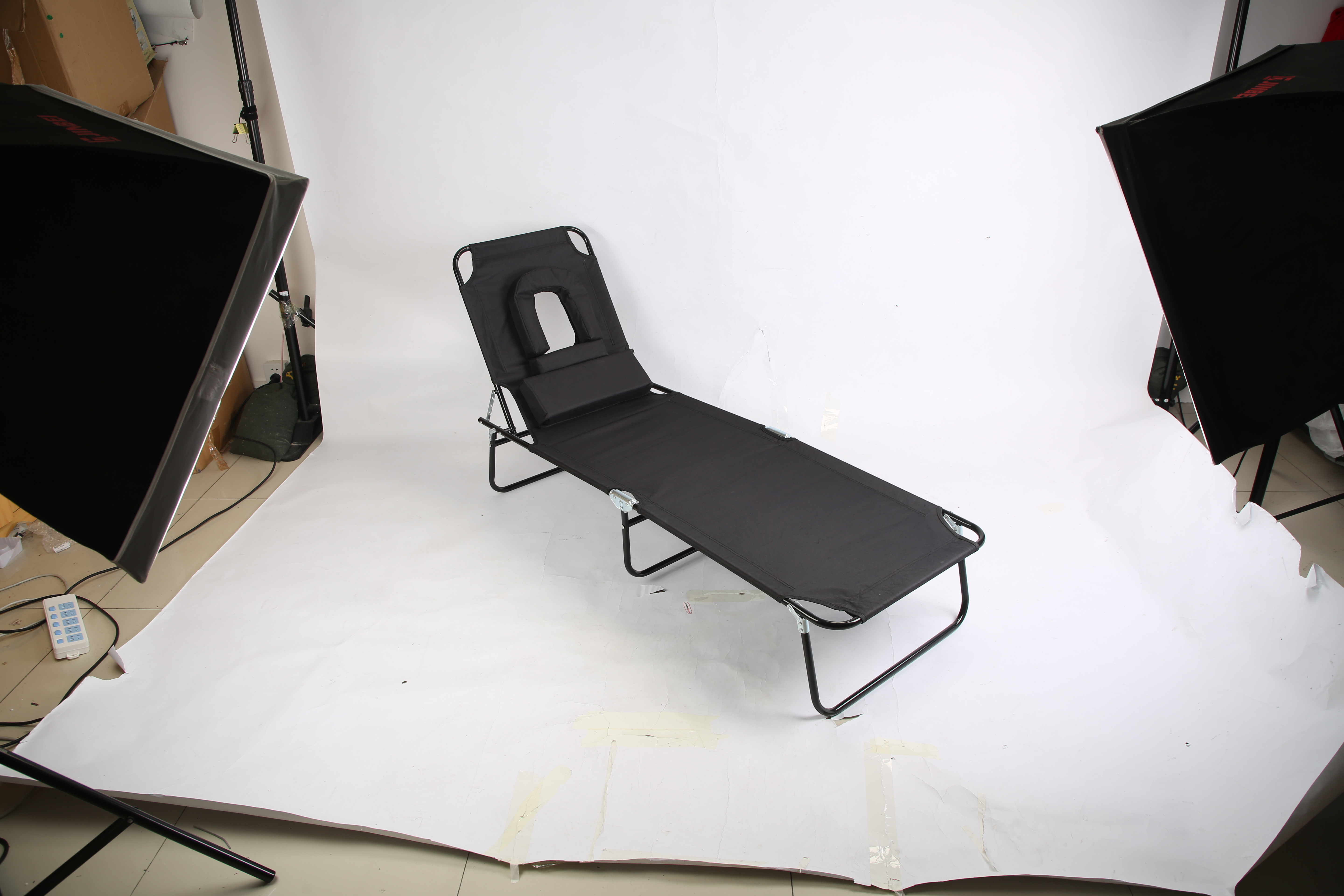 This folding Beach Lounge Chair is built for comfort and versatility at the beach, pool, garden, or patio. Made with a strong steel pipe frame and Oxford cloth with PE coating, the Beach Lounge Chair supports up to 265 lbs while resisting wear and moisture. Its tri-fold design makes it compact for storage and transport, while the 5-position adjustable backrest and foldable legs allow customized relaxation. Featuring a built-in face hole and three removable pillows, this Beach Lounge Chair delivers maximum comfort for sunbathing or leisure.