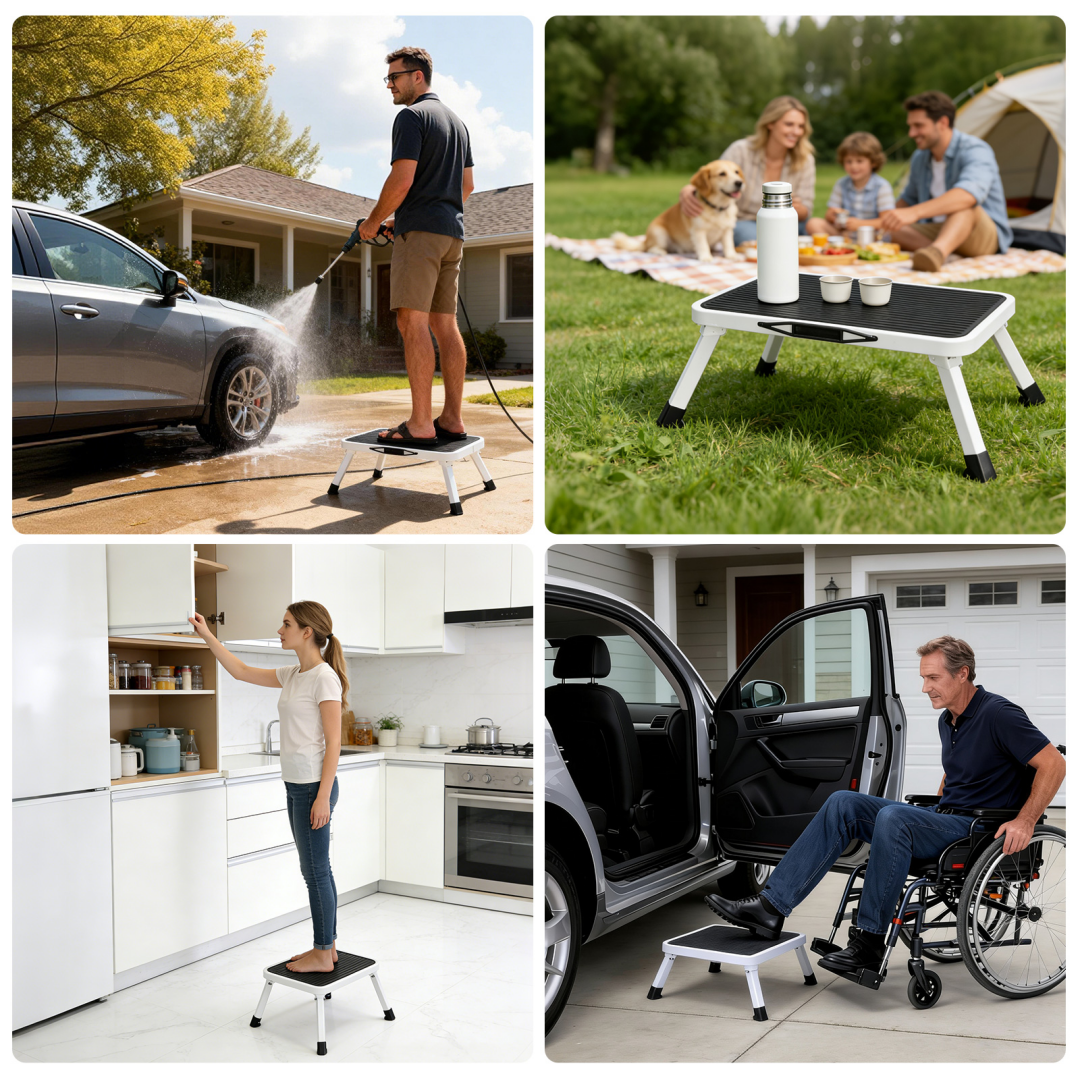 This folding step stool is built for strength, safety, and long term reliability in demanding environments. Designed with a reinforced metal frame, the folding step stool provides stable support while the folding step stool compact design allows easy storage and transport.
