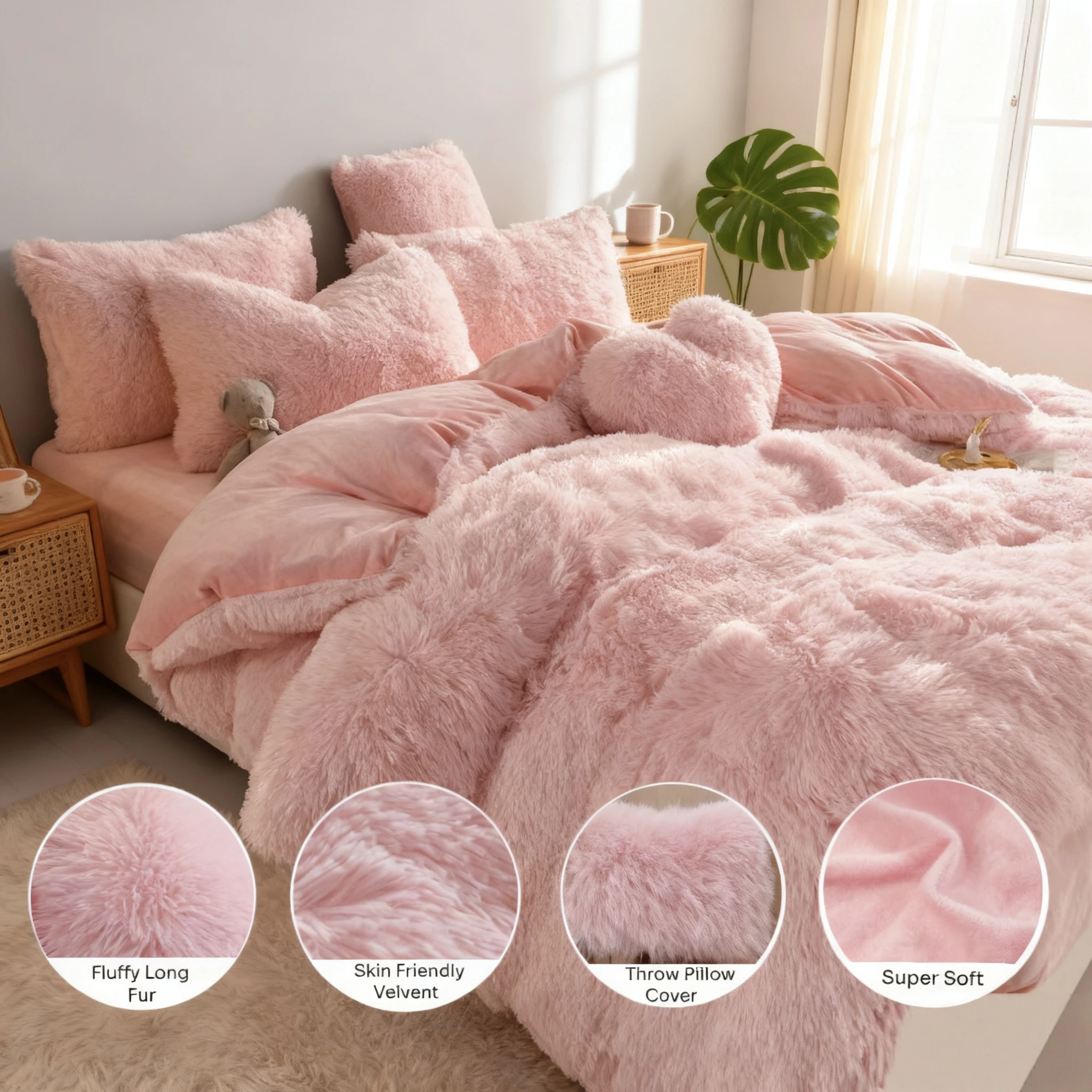 This Nordic inspired duvet covers set features a soft plush texture designed to feel warm and cloud like. The light pink tone and heart shaped accents create a modern cozy look, while the polyester fabric offers lasting comfort for any season. These duvet covers add warmth and softness to elevate a bedroom into a relaxing space.